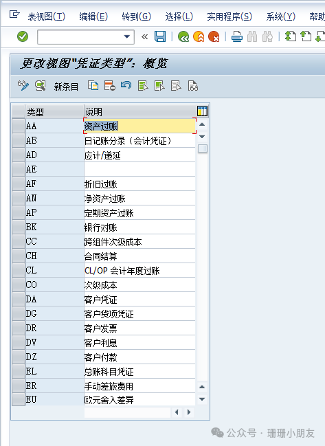 執行進去之後我們就可以看到所有SAP預先定義的憑證類型。