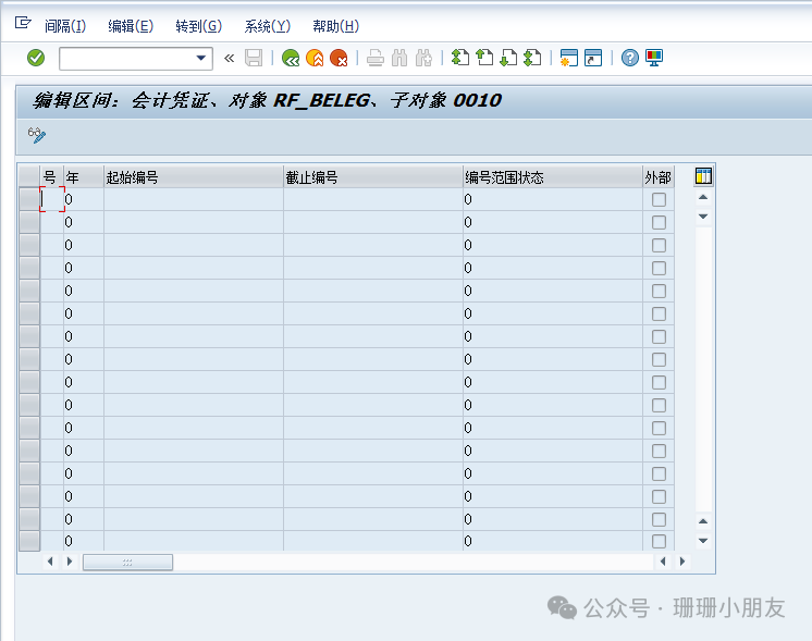 設定路徑:財務會計 – 財務會計的全域設定 – 憑證 – 憑證編號範圍 – 定義憑證編號範圍